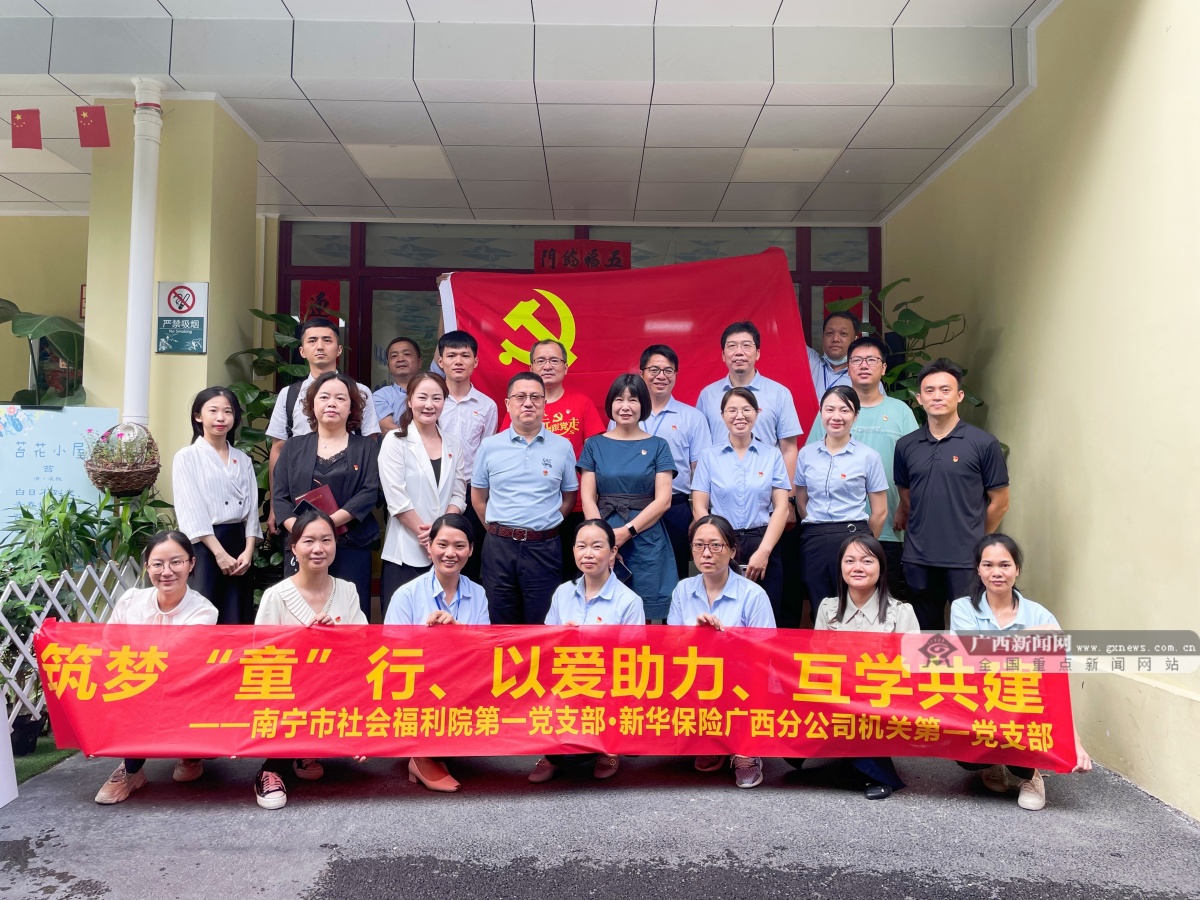 新华保障广西分公司圈套第一党支部与南宁市社会福利院第一党支部发展互学共修大旨党日营谋。新华保障广西分公司 供图